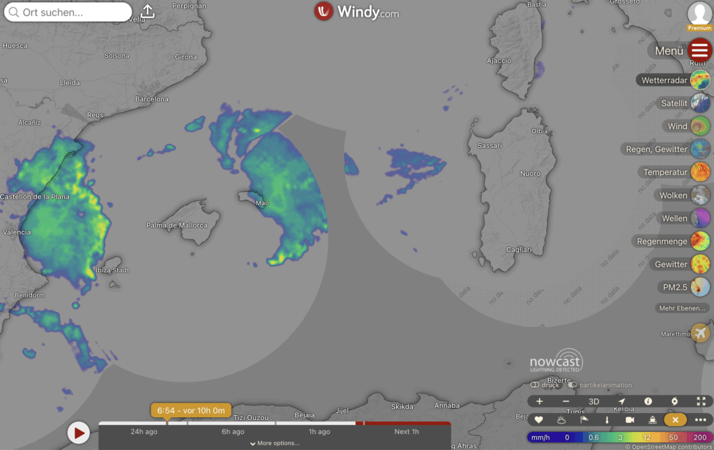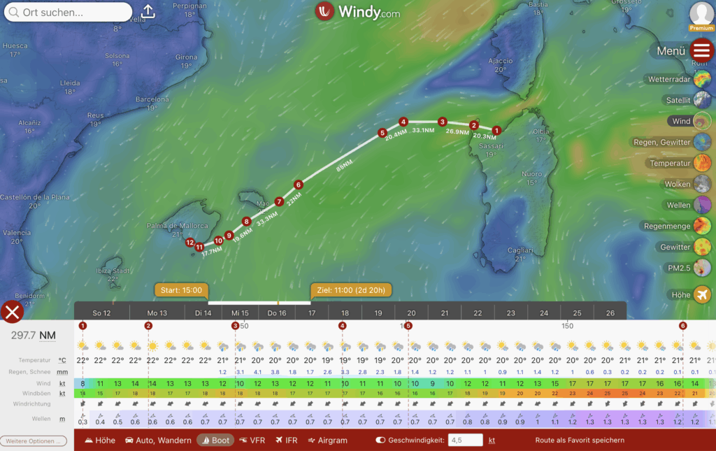 Gleichzeitig sorgt aber die aktuelle Großwetterlage dafür, dass ich zwar den Wind aus der passenden Richtung habe, aber auf meiner Strecke immer wieder starker Niederschlag und Gewitter angekündigt sind. MEGA! Pest oder Cholera, welches Schweinderl hätten’s denn gern?