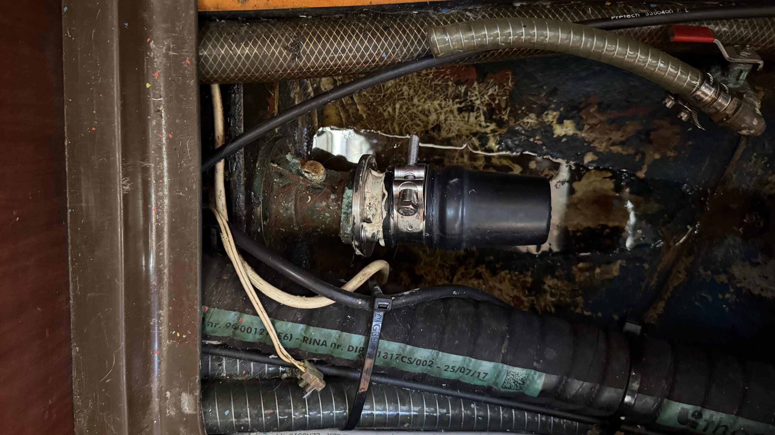Das Boot wird sanft in Wasser gelassen, ich kontrolliere die neue Wellendichtung – undicht. Wusste ich eigentlich schon vorher, aus Gründen habe ich aber nichts dagegen getan. Robulla hat Frankensteins-Wellendichtung: An das Stevenrohr geschraubt (?) ist die originale Stopfbuchse, an die ein Adapterstück geflanscht ist, auf das dann eine Wellendichtung gesetzt werden kann. Das Teil ist einen Mü zu schlank geraten und so dichtet die mit der Penta Seal mitgelieferte Schelle nicht ganz ab. Problem kannte ich aber eben und konnte schnell gelöst werden.